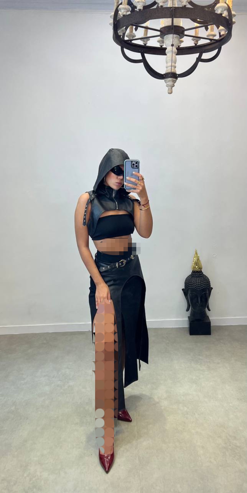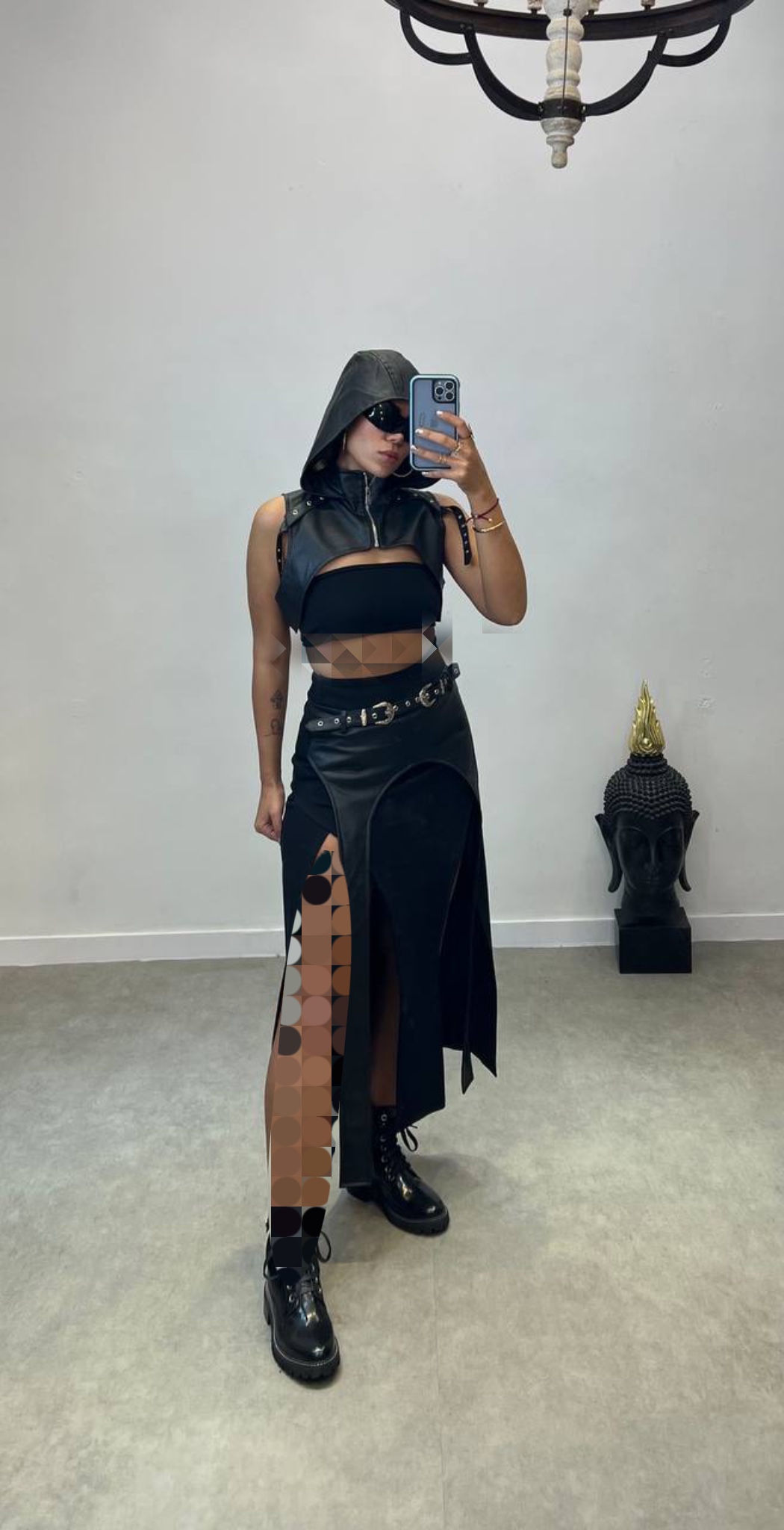 ست ۳ تیکه هودی دکلته و دامن چرم-سایز بندی ۳۴ تا ۴۲